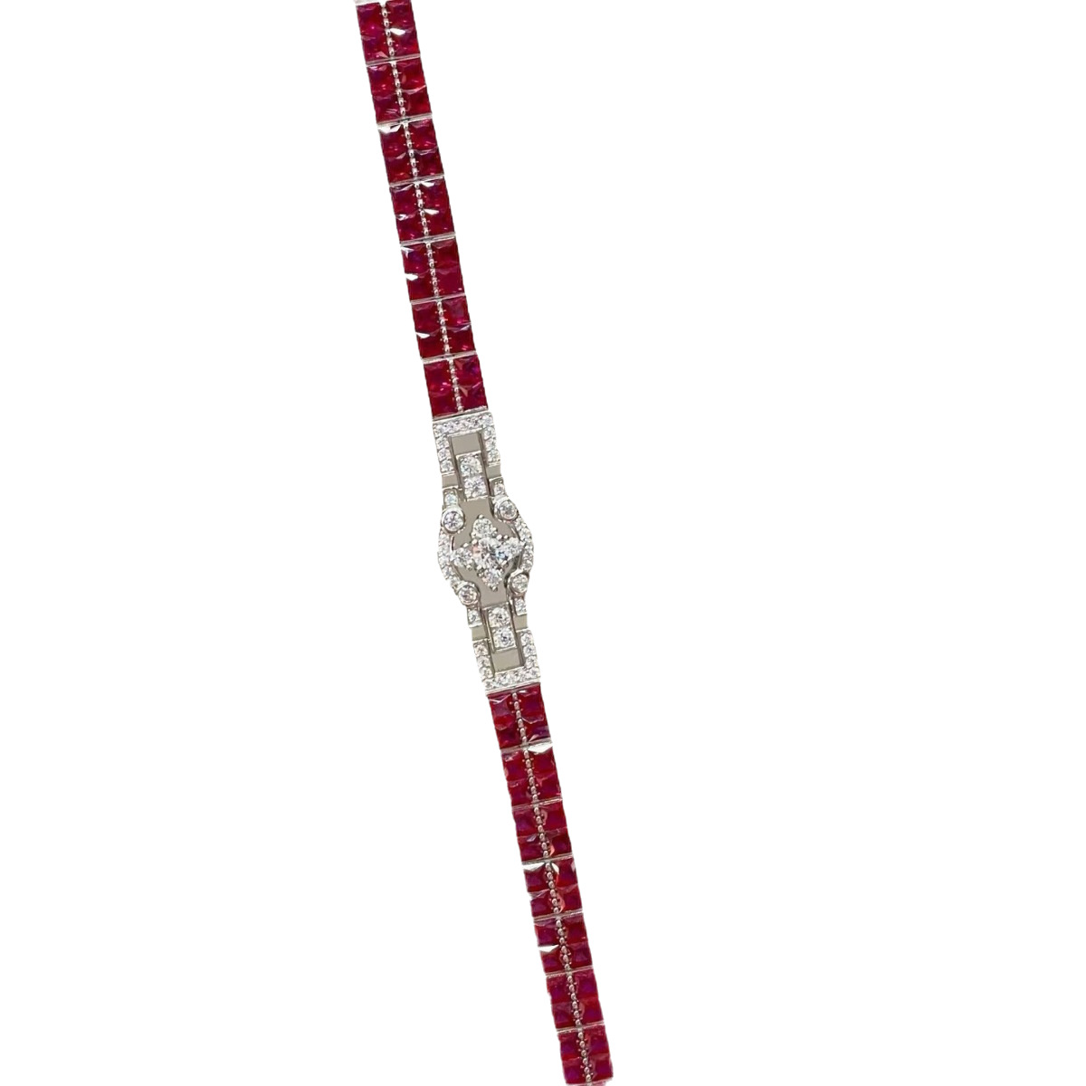 Gold-Plated Silver T-Square Ruby Bracelet – Double Row Chain・Flexible Clasp・Imported High-Carbon Diamonds, Light Luxury for Women