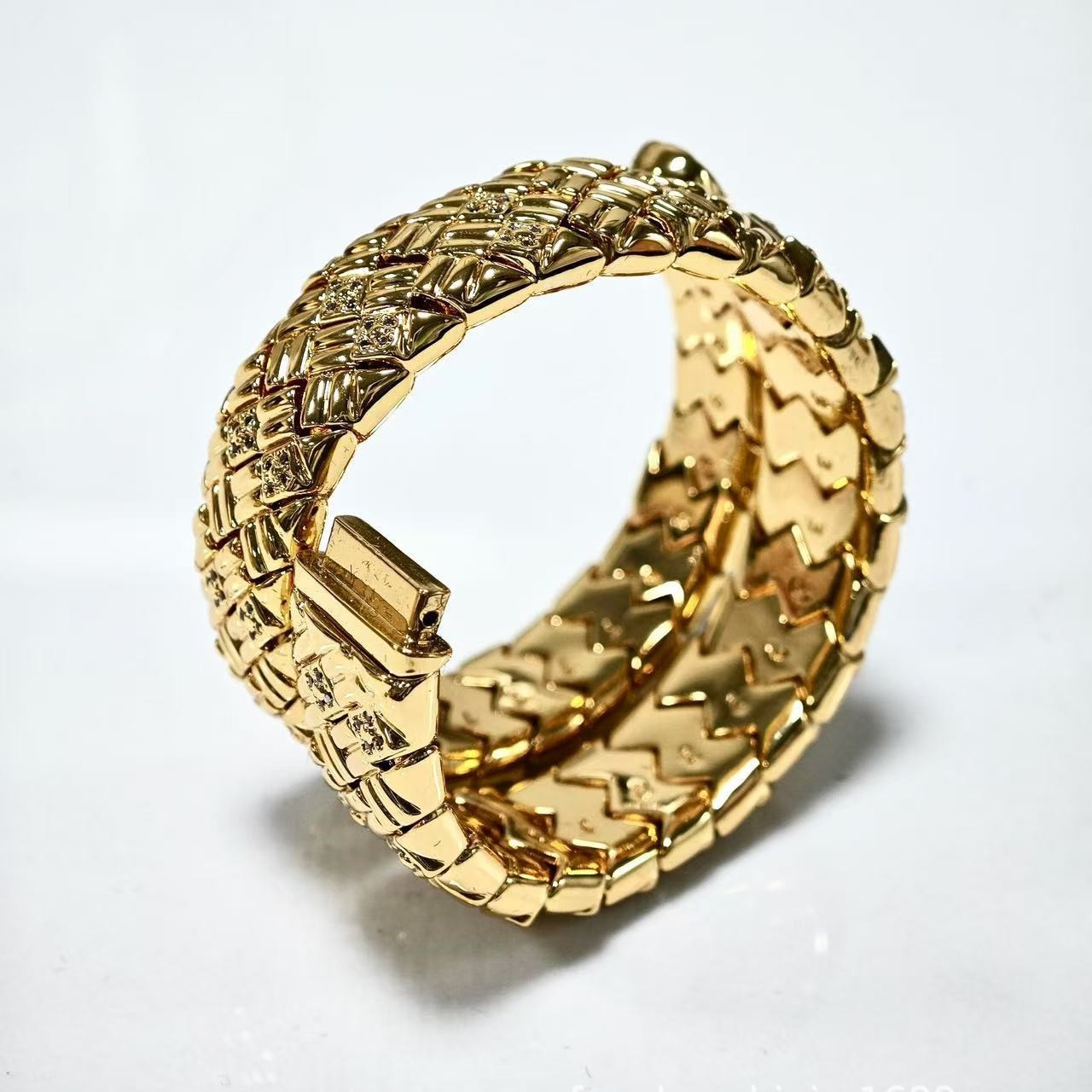 Trendy Gold-Plated Snake Design Watch Band — Brass Core with Spring Clasp