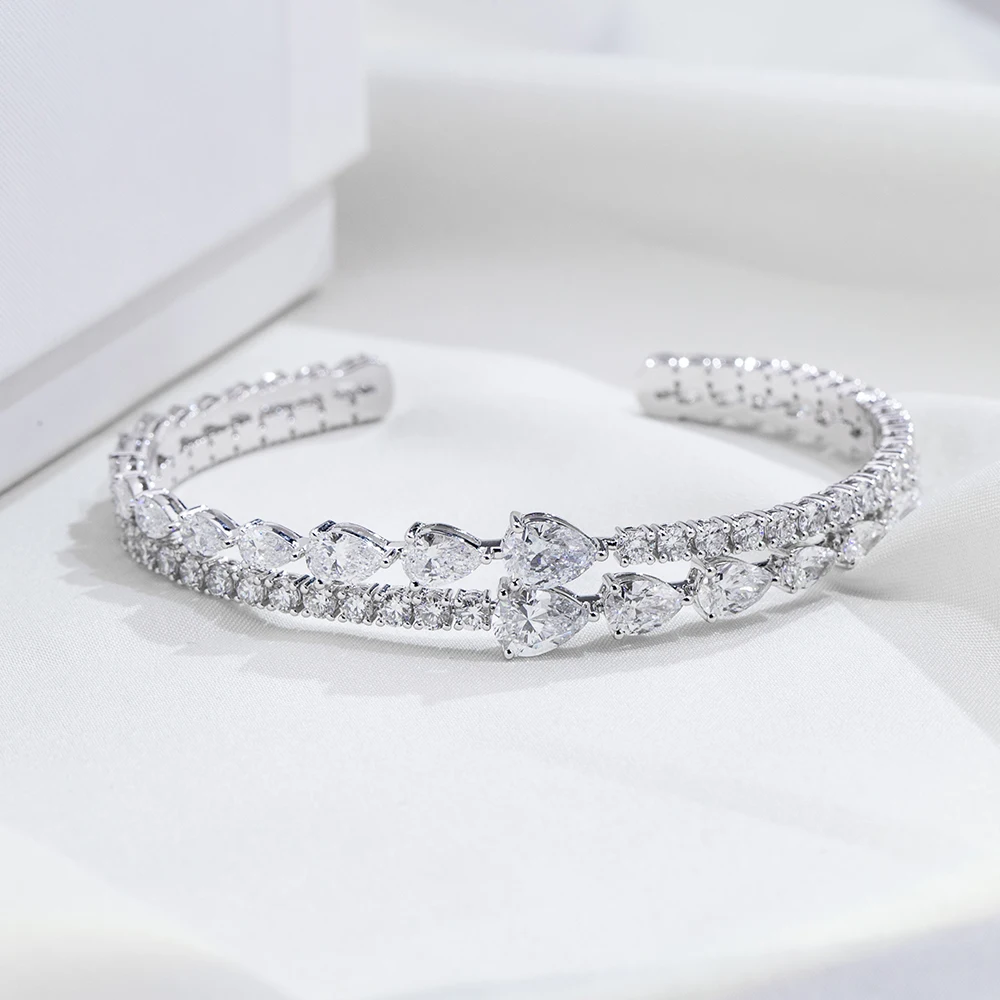 18K Real Gold Bracelets Round Pear Shape Lab Grown Diamond Bracelet