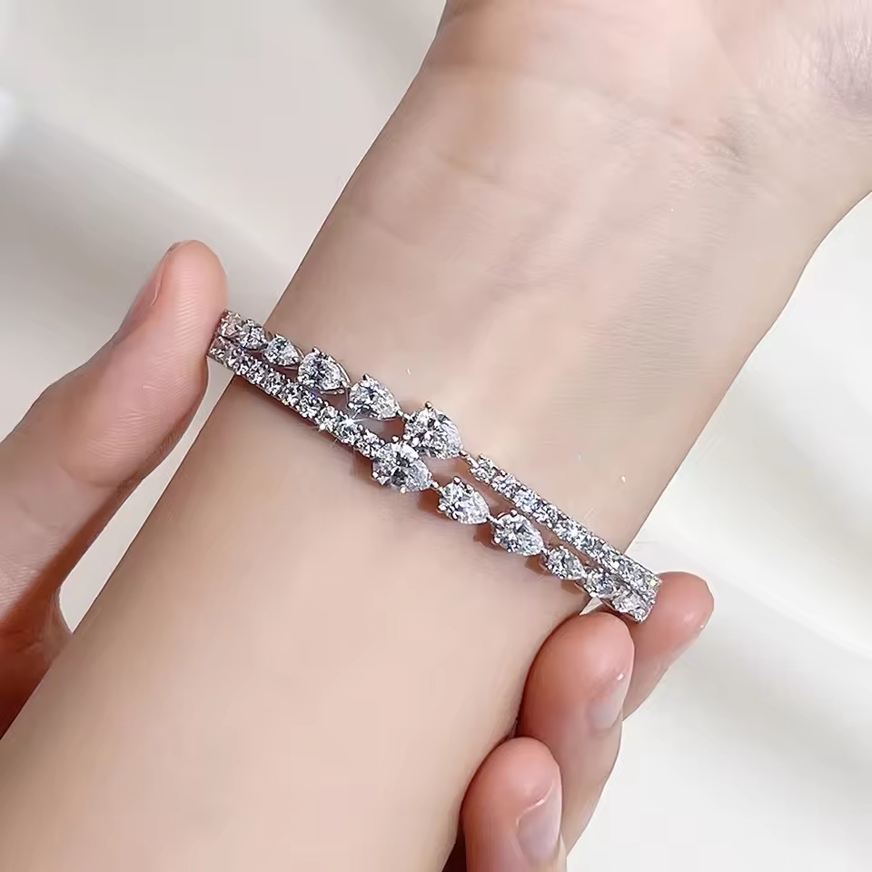 • 18K Real Gold Bracelets Round Pear Shape Lab Grown Diamond Bracelet