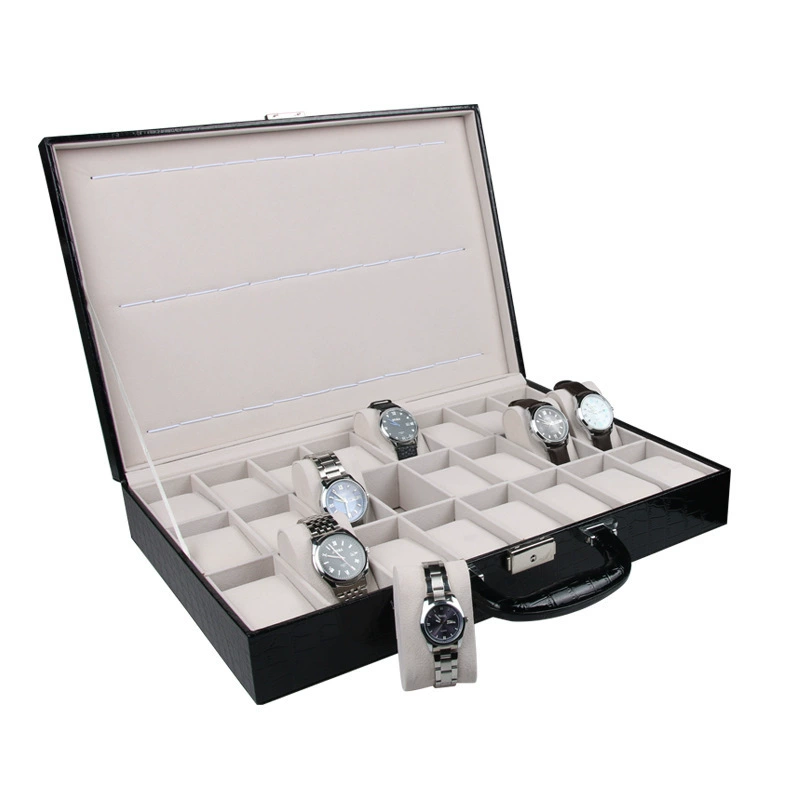• Watch box 36-slot black crocodile pattern watch case clock leather box mechanical watch display storage box street stall carrying case