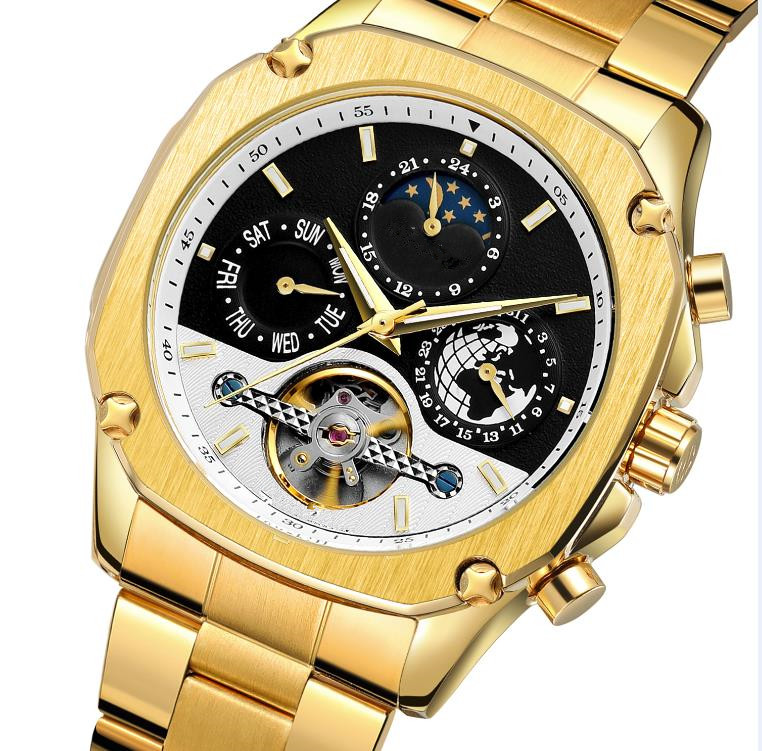 Men’s Luxury Tourbillon Stainless Steel Automatic Mechanical Wristwatch