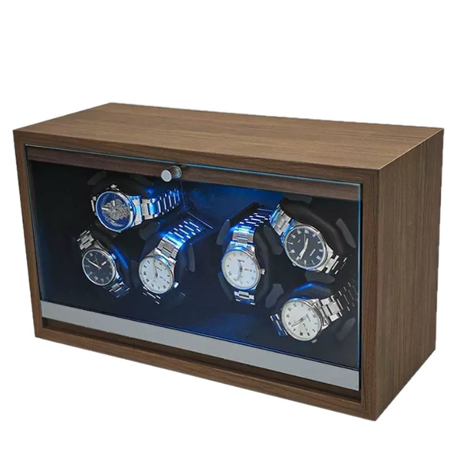 Black Walnut-Grain Wood Watch Winder: Fully Automatic, 6-Slot Capacity (Comprising two independent 3-slot motorized units)